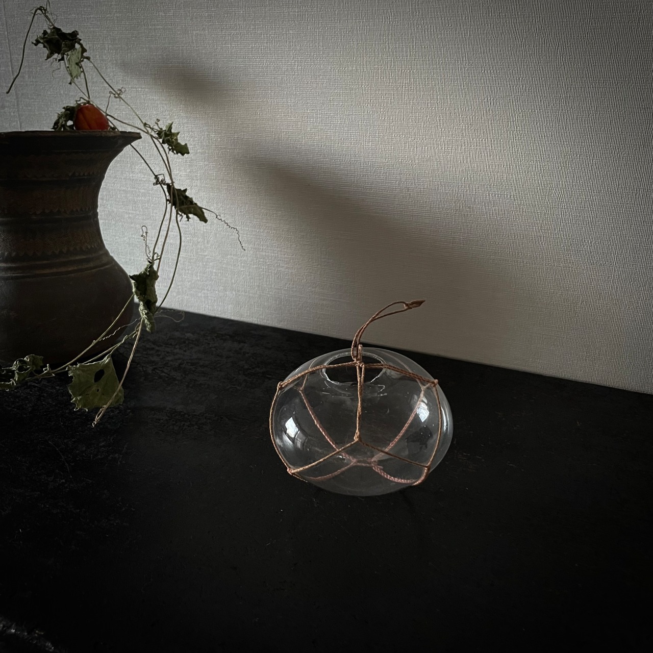季節の花を挿したり、吊るして飾っても絵になる一点です。