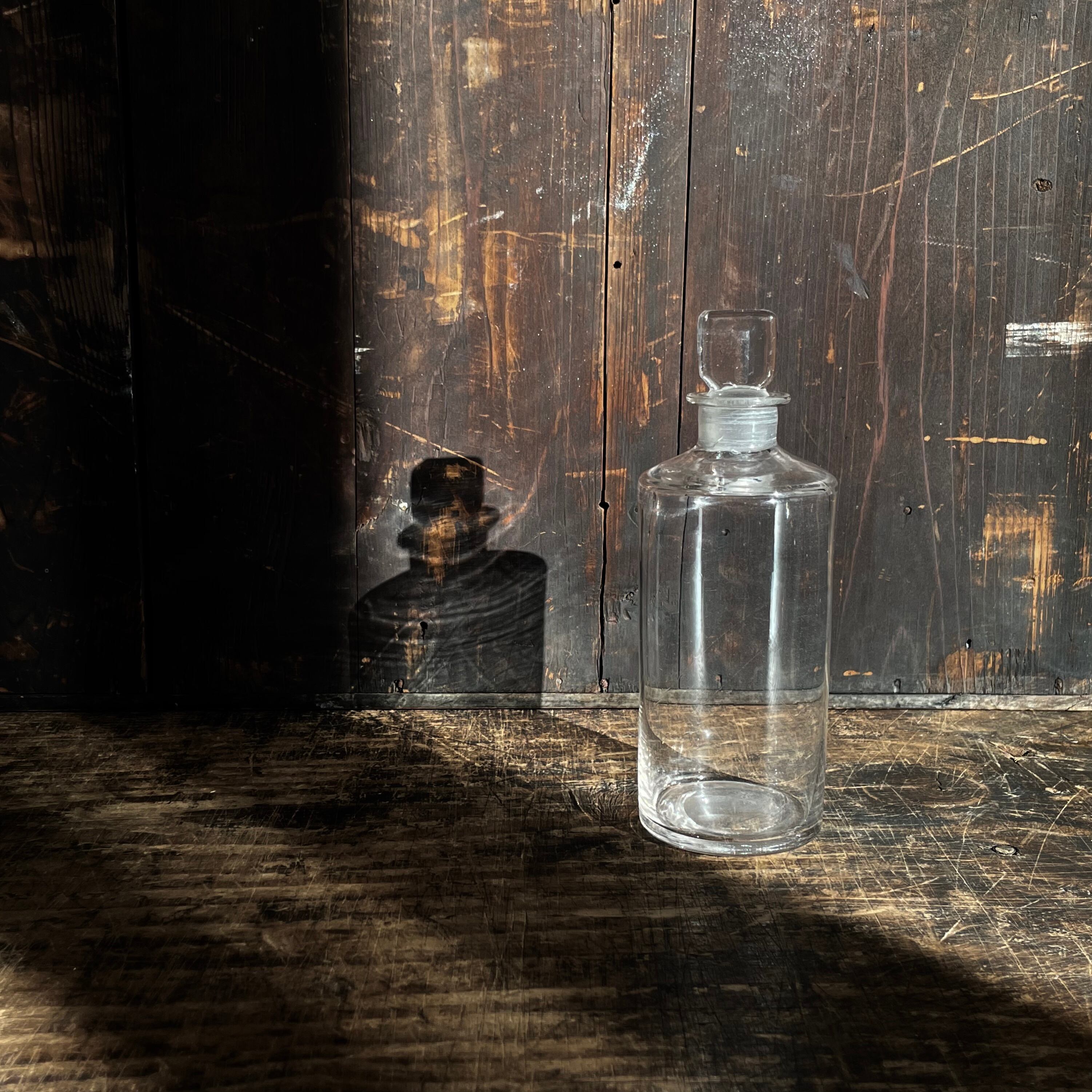 Early 20th-century Japanese glass bottle with a ground-glass stopper.