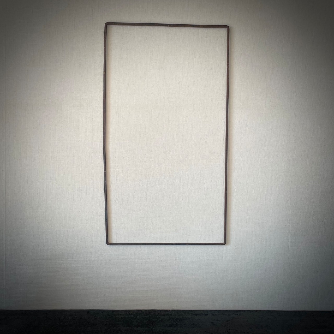 A simple iron frame with time-worn rust and distortion.