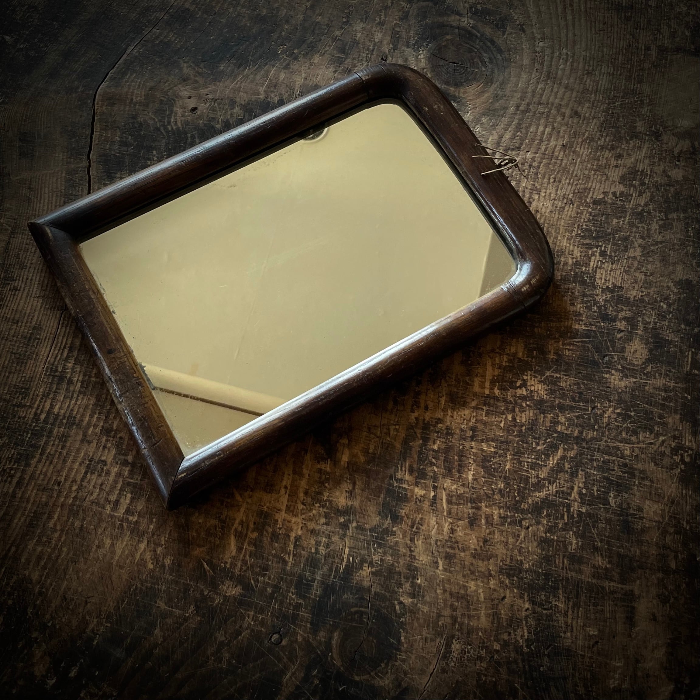 Softly aged glass and a gently curved frame.