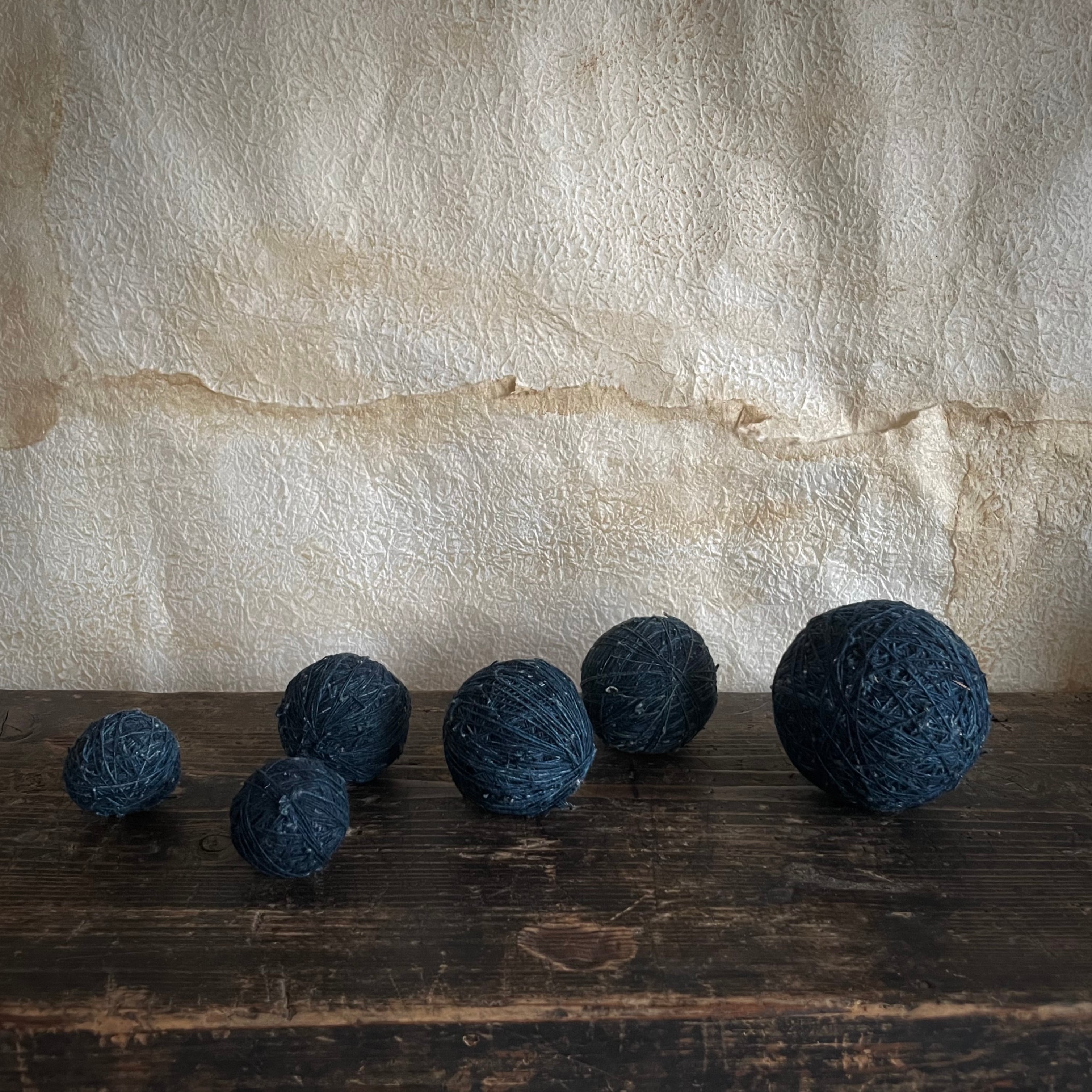 使い込んだ麻糸をまた大切に糸玉に戻したのだと思われます。